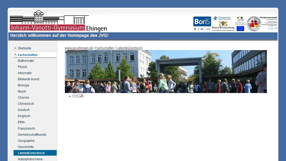 Latinum [ derzeit nicht aktuell, da wegen G8 keine Latein-AG »läuft« ]Verglichen mit »Interesse« ist nicht nur der Titel des Lehrbuchs der Latein-AG wesentlich prosaischer: es heißt, wie der Abschluss, der mit der Arbeitsgemeinschaft erreicht werden soll: »Latinum«.